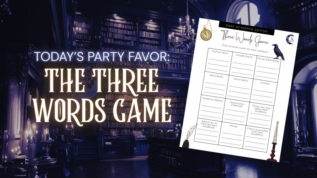 For today’s party favor, I’ve got something fun for your creative side, a printable version of The Three Words Game! It’s a great way to spark ideas or test your imagination. Download it below and play solo or with friends!