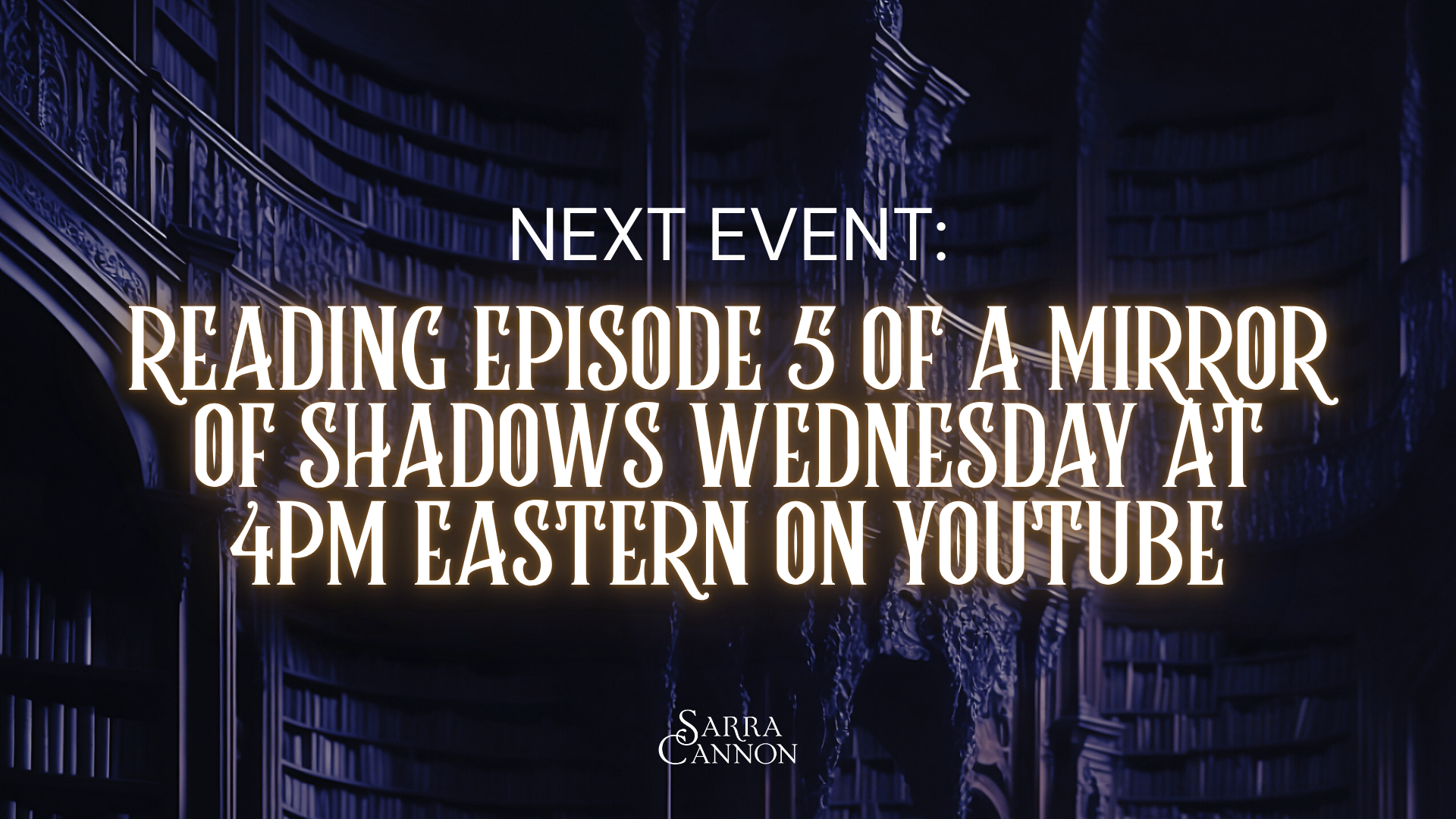 The plot’s stirring, and there are so many twists and turns still to come in A Mirror of Shadows. Join me every Monday, Wednesday, and Friday at 4 PM Eastern on YouTube as the story unfolds!