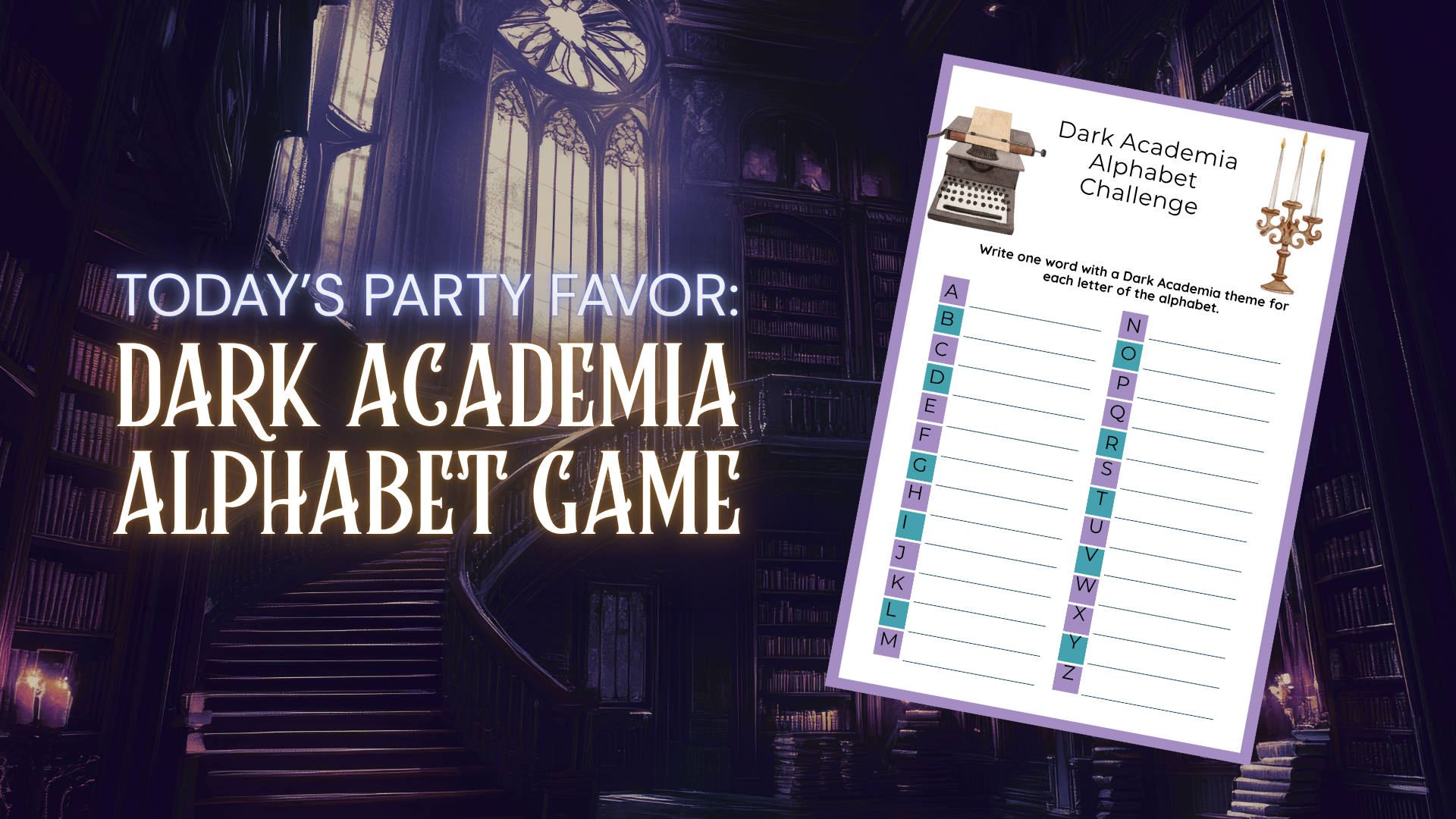 Today’s downloadable party favor is a fun and mysterious Dark Academia Alphabet Game. It’s a perfect little challenge for anyone who loves puzzles, books, and moody candlelight study sessions.