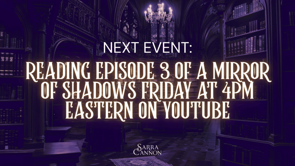 Next Up: Join me on Friday at 4PM Eastern on YouTube for Episode 3 of A Mirror of Shadows!